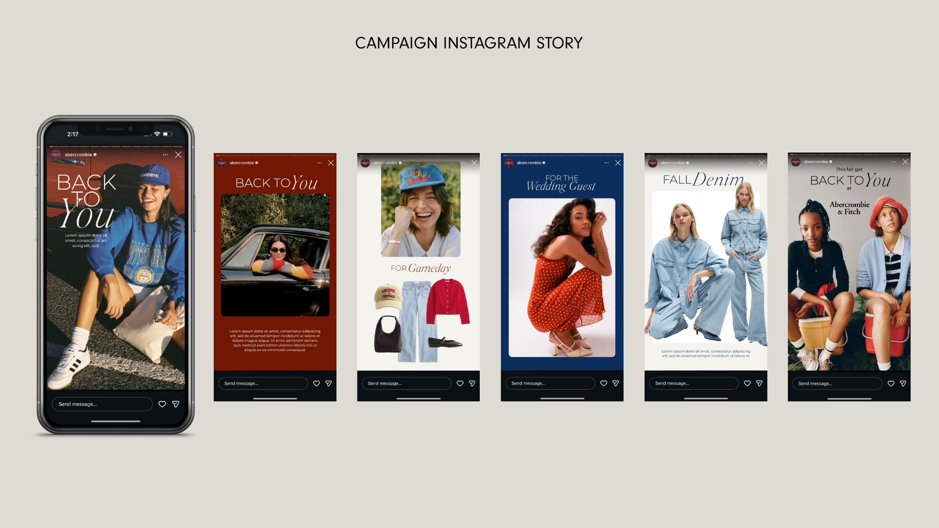 Inspired by the creative of Abercrombie & Fitch, I wanted to see if I could take an elevated approach to what their Fall season could look like if they leaned into the nostalgic feel of ‘Back to School’, just marketed towards older Gen Z/Younger Millennials.