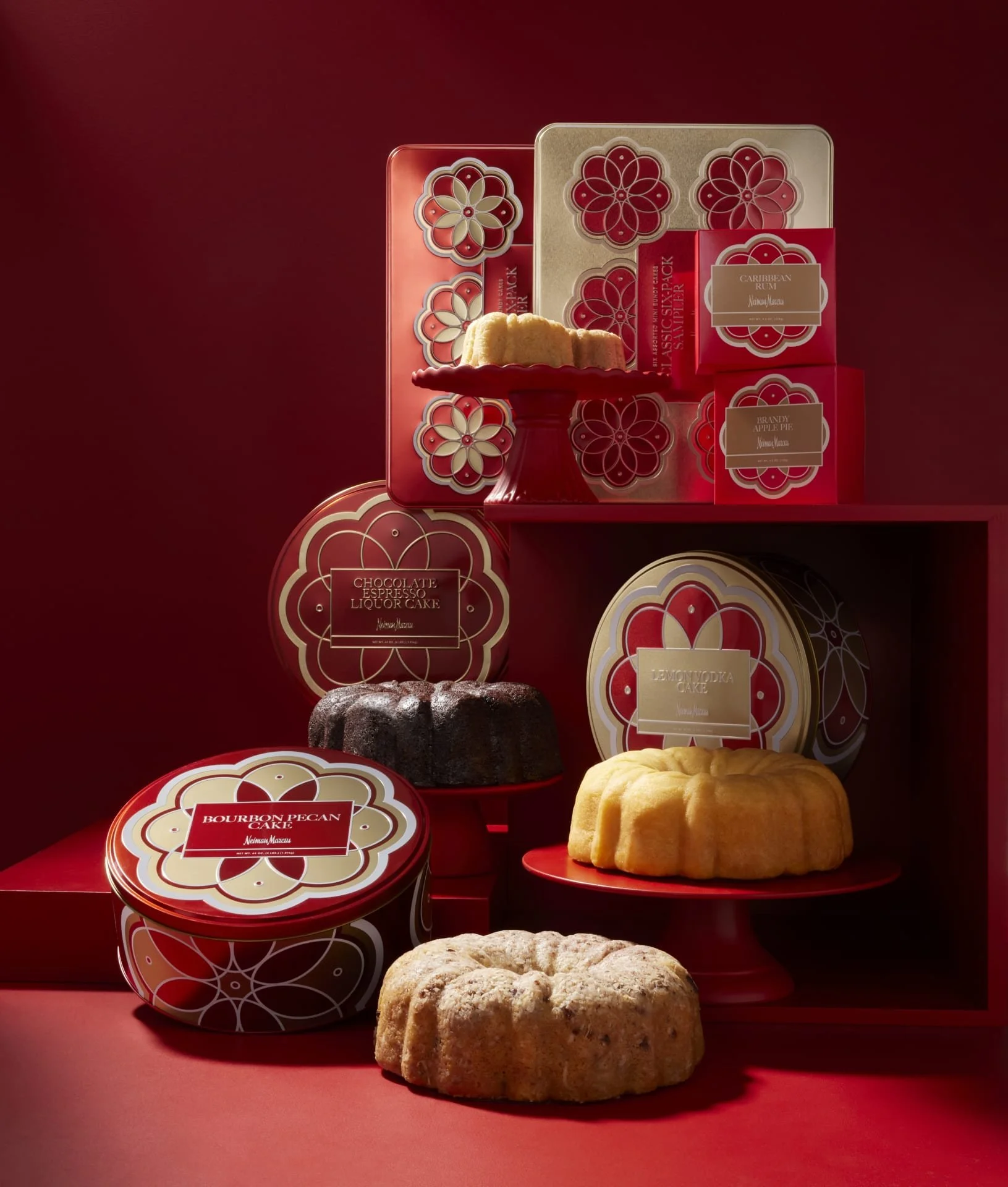 Taking that approach one step further, I wanted the color on each tin to reflect the flavor of the cake inside (lemon vodka is light gold, bourbon pecan a darker burgundy, etc.)